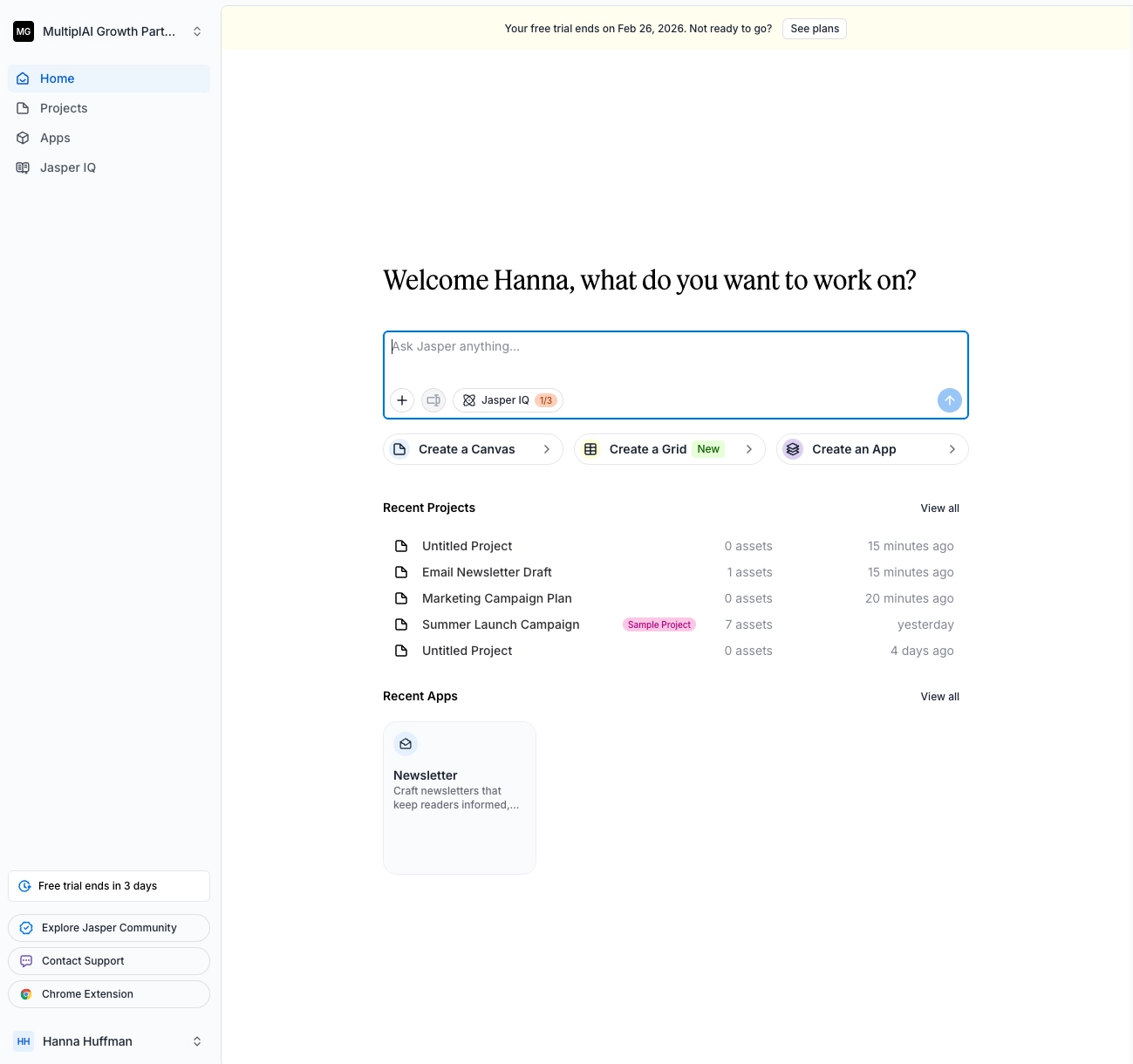 And the UI itself is polished. Jasper clearly invested in making the product feel premium. Everything loads quickly, the design is modern, and the onboarding flow is smooth.